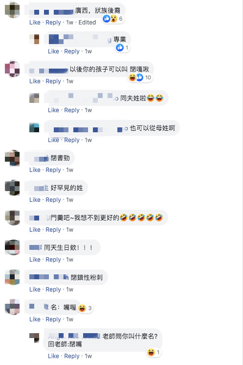看到如此罕見的姓氏,網友們也都覺得很新奇,紛紛留言說「第一次看到這個姓,好特別」、「對不起但我忍不住笑了」、「辛苦了,關於那些對妳亂取綽號的叫他們閉嘴吧」、「天啊我活30年,第一次遇到同姓的」。