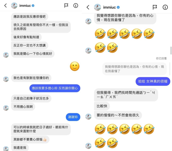 ▲賴銘偉收到朱俐靜的關心私訊。(圖/翻攝朱俐靜IG、賴銘偉臉書)