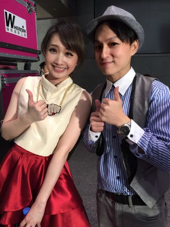 ▲陳海茵(左)2016年主持尾牙場時,朱俐靜(中)剛好擔任演唱嘉賓。(圖/翻攝自Facebook/陳海茵)