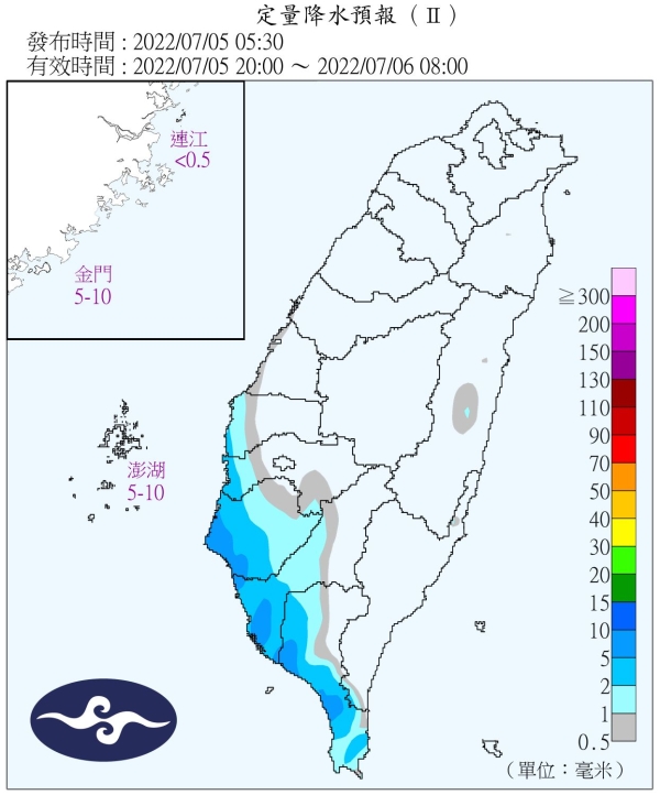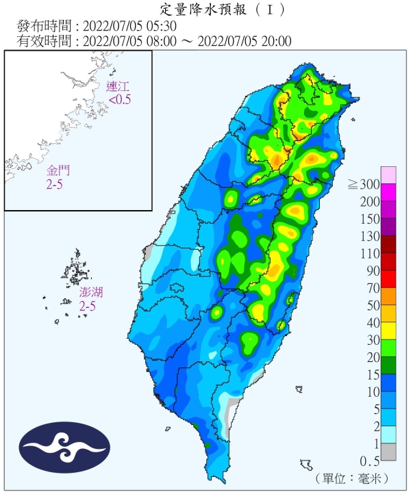 南部3縣市大雨特報!中央氣象局預報員陳伊秀提醒,今天(5日)、周三南部和午後中部以北及各地山區有局部大雨機率。