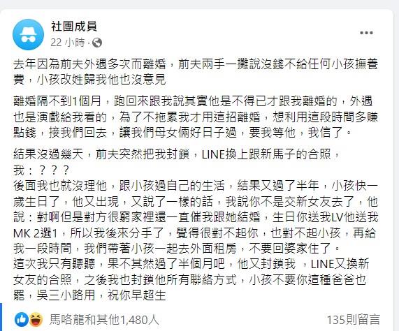 結果過沒幾天,前夫突然把我封鎖,LINE換上跟新馬子的合照!