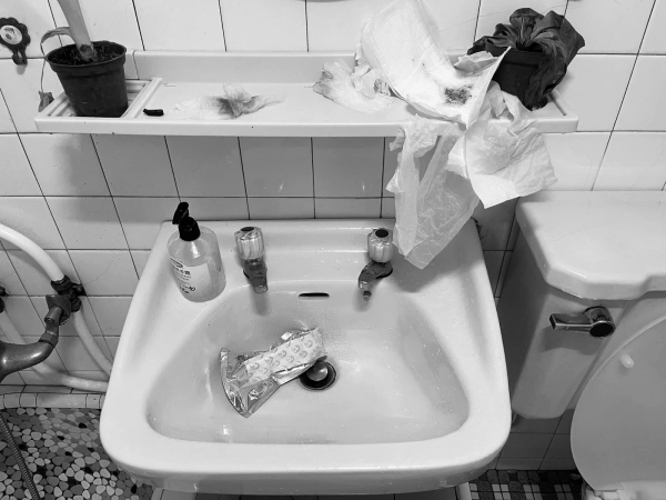 把裡面員工廁所馬桶塞滿了衛生紙阻礙!
