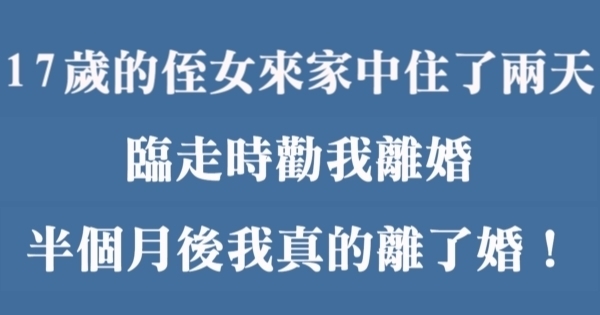 我心裡起了疑,結合當初侄女的話我似乎明白了什麼。我給侄女打了電話,把我見到的事情和她說了,然後追問她到底是因為什麼而要我和老婆離婚。侄女想了一會終於說了實話。
