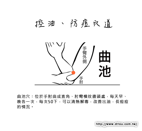 位於手肘曲成直角、肘彎横纹盡頭處,