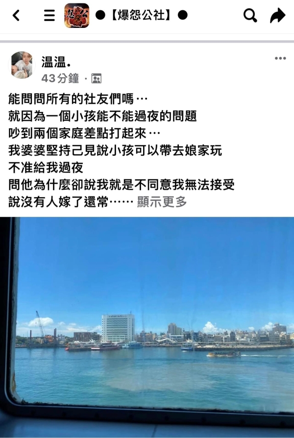 (什麼時代了,婆婆太強勢,回家過夜又沒什麼,無理。)。