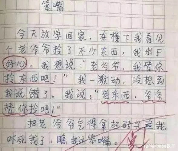 從上國小開始,學生便開始接觸作文,老師不定期會給學生布置相關作業,而這項作業也是最具趣味性的,經常會讓老師和家長「哭笑不得」。