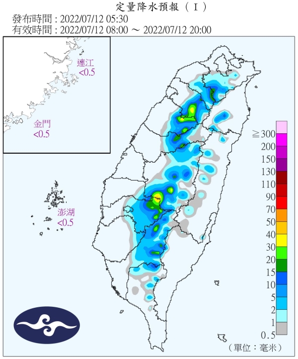 中央氣象局預報員張承傳表示,周三、周四南方雲系北移,花蓮、台東和恆春半島有些局部短暫陣雨,其他地區午後雷陣雨較擴大。