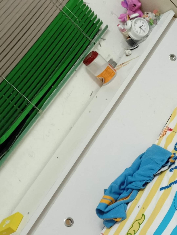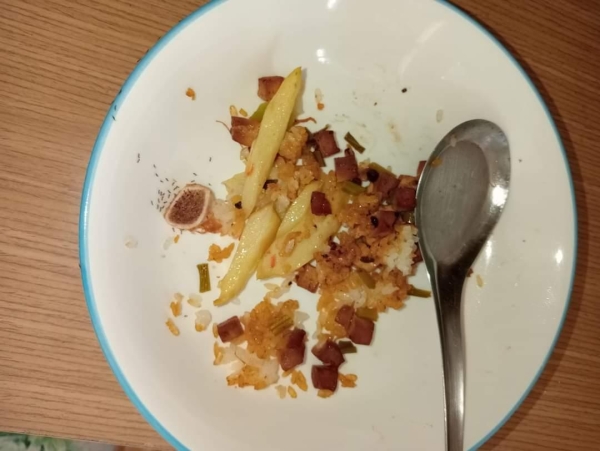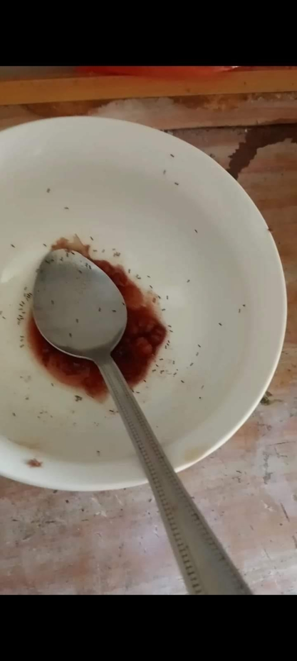 老公也曾多次隨便拿1個碗盤裝食物給大女兒用,昨晚也是,結果大女兒昨晚又沒吃完也不收,放到今早丟在房間任它長螞蟻。