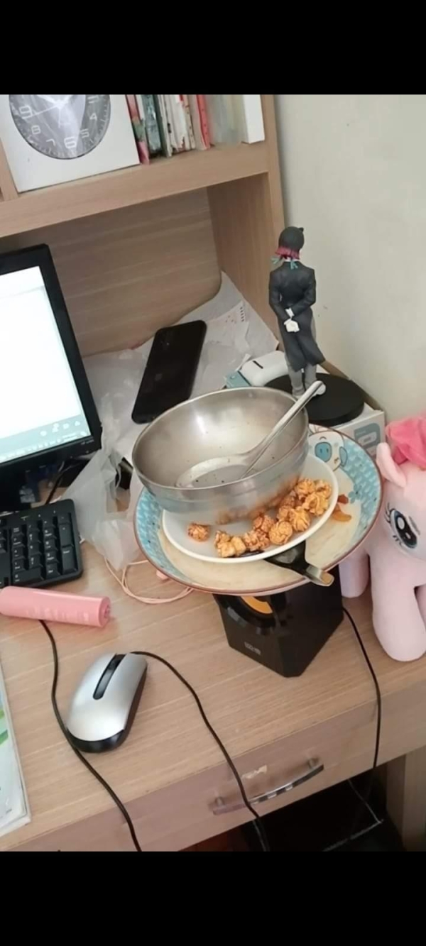 「吃的食物餐具我無法忍受,因為有蟑螂螞蟻很麻煩也會有異味,但是東西多或是很亂我就無所謂」