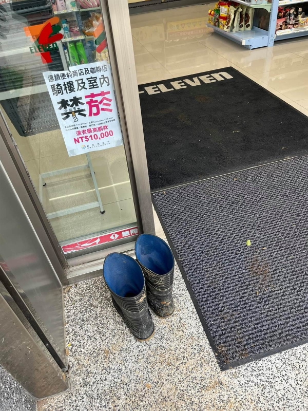 PO主看完對方這一身扮相,疑惑心中生,為何會這身打扮來便利店呢?結果,當他滿懷困惑的走到便利店門口時,驚見一雙沾滿了泥土的雨鞋,規規矩矩的擺放在店門口處,這時他才恍然大悟!「這時候我才突然明白了一切,原來這位男士是怕自己沾滿泥土的雨鞋會把店內的地板弄臟,因此他才在進門的時候,把自己的雨鞋脫在了點店外面。」