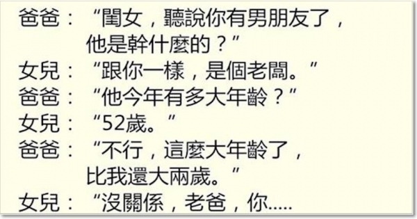 女兒:「沒關係,老爸,你女朋友不也比我小兩歲嗎!」