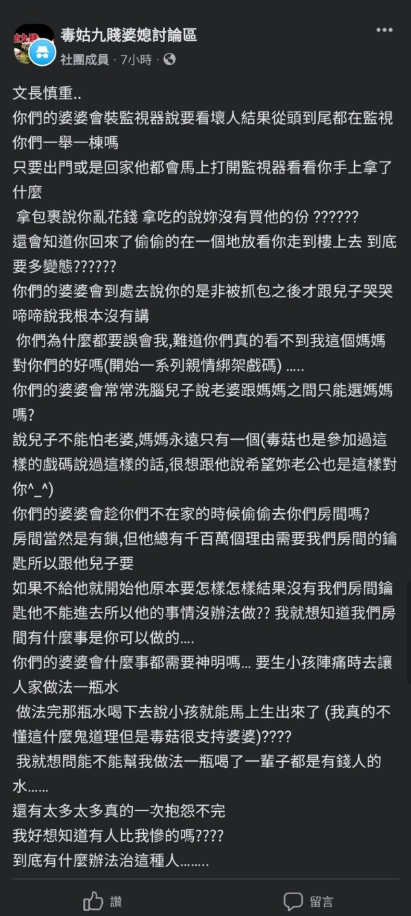 「唯一解決辦法就是妳們夫妻搬走,離開婆婆外面住,這種精神虐待不瘋才怪」