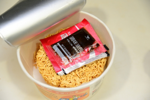 6、泡麵的調料,蔬菜包和調味包留用,油包棄用。