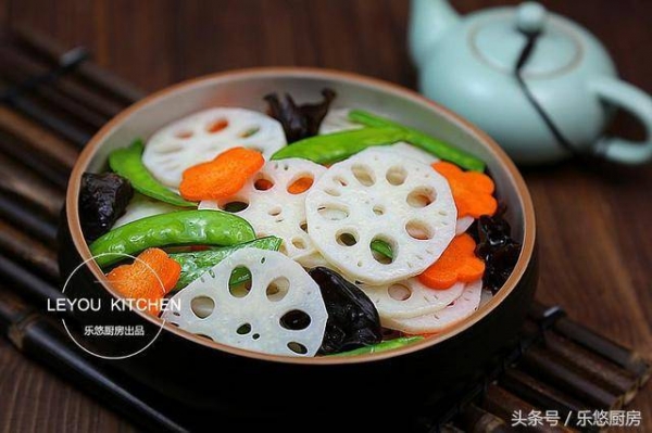這菜由多種蔬菜搭配而成,營養全面均衡、色彩繽紛講究、口感脆嫩清爽,減肥期間可以適當的吃一些。