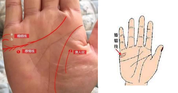 若婚姻紋超過六條,而且找不出主線,則婚姻關係較亂;婚姻紋長,擇偶條件苛,對配偶的要求也高,婚姻上會有壓力。