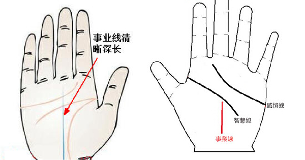 事業線——是從手掌底部往上升的紋,有的人可以直抵中指根部,也可稱為命運紋。