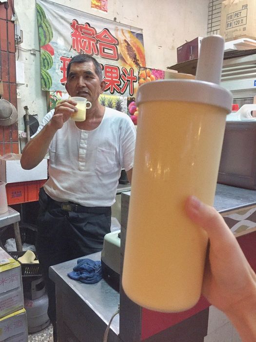 ▼原po與老闆聊著聊著,老闆還大方送上一杯哈密瓜鳳梨汁,並堅決不收錢。這是隱藏版飲料,不一定每天都有,喝起來原汁原味,就像水果在舌尖上舞動一樣。原po大力推薦這家果汁攤,還貼出飲品照片,讓大家看看飲料多濃郁。