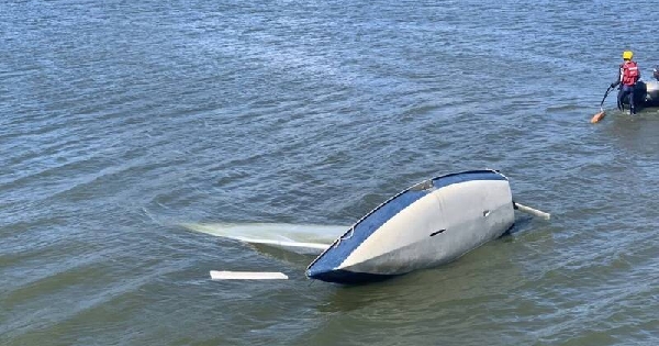 「該水域應該約有三米,昨天高雄強風(我在外騎機車風真的異常的大),強陣風下帆船旋轉翻覆,中央舵板確實浮在水面,沒插在船中央,這對小帆船的平衡穩定影響甚大。」