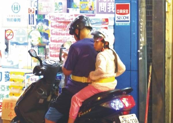 此外,讓孩子獨自坐在機車後座,若孩子的手不夠長而無法抓握後方扶手或環抱騎車的大人,