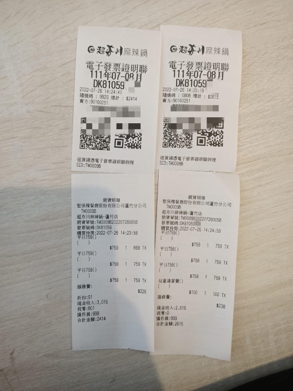 結果在結帳時,由壽星本人去結帳,卻被分成兩筆帳單,而且優惠還不是『當日五折』,店家給的理由竟然是: