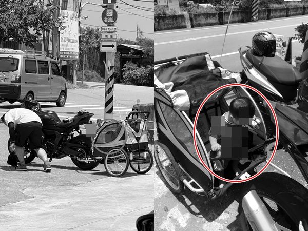 一名重機騎士表示,他看到車友違法在重機後方加裝嬰兒車,以拖行的方式帶著小孩出遊,還想在這次測試後,以相同的方式帶著小朋友環島,讓網友看完傻眼,直呼「當小孩人體空氣清淨機?這種不但危險,還會害到別人還是別上路了。」