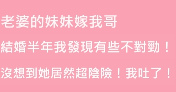 半年前,我哥娶了老婆的妹妹。說來是親上加親,其實老婆和妹妹沒有血緣關係,妹妹是老婆繼母的女兒,我們叫她婷婷。是的,岳父和岳母是組建家庭,老婆的親生母親在老婆十歲時一場意外去世了。後來,岳父就找了現在的岳母,他們各自帶著一個女兒。