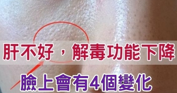 肝臟解毒功能下降,臉上會有皮膚晦暗、毛孔大;