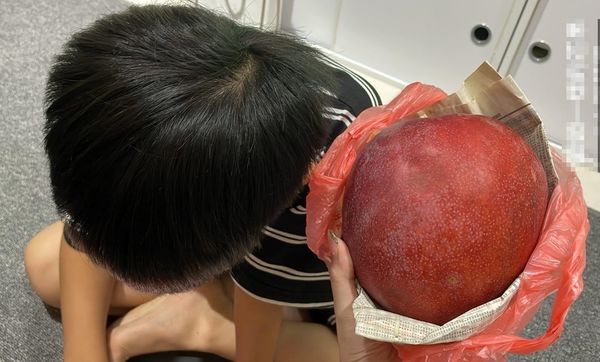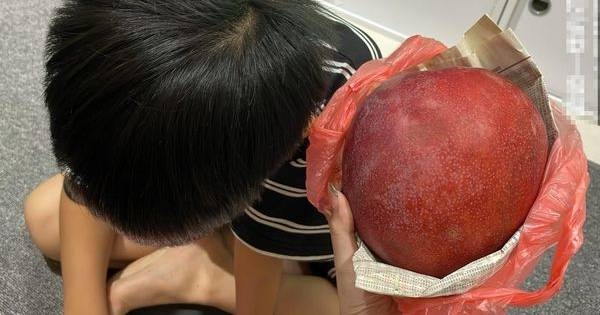 ▲網友在屏東買了跟頭一樣大的水蜜桃芒果。(圖/翻攝自爆料公社)