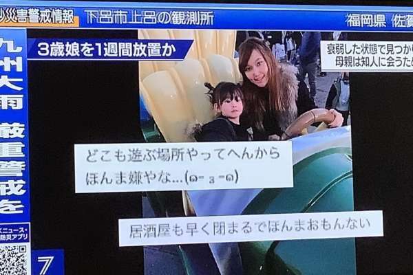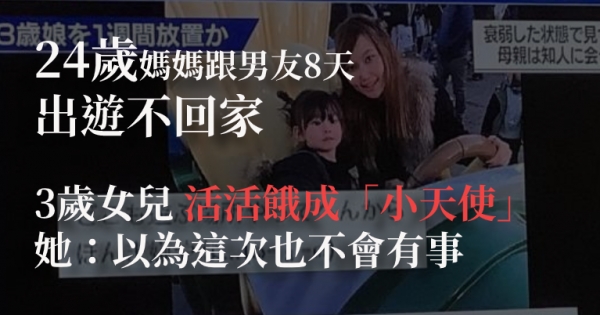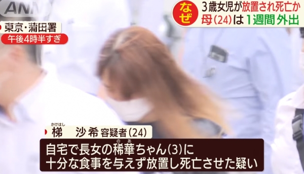 《朝日新聞》稱,應該是脫水與飢餓,她的24歲媽媽梯沙希7日遭到逮捕。
