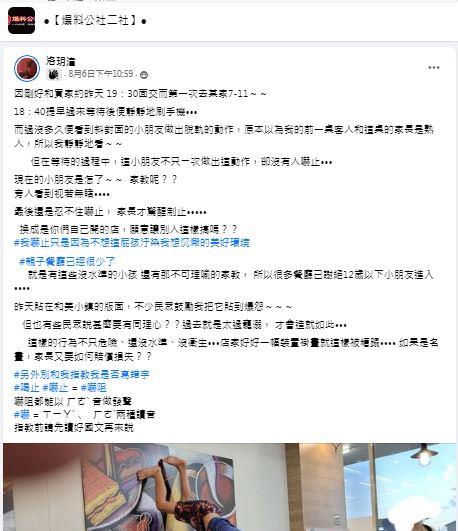 「做過這麼多服務業,一代一代的小孩比無極化!曾經還聽到朋友說百貨公司,小朋友在玩手扶梯差點摔下去,他連忙跑去抱住小朋友,找到父母時,對方還說出事百貨公司會賠償.....現在某些父母認為出事了,第一件事情是商家必須賠償。」「等他變在地小孩 我一定先笑爆他!」