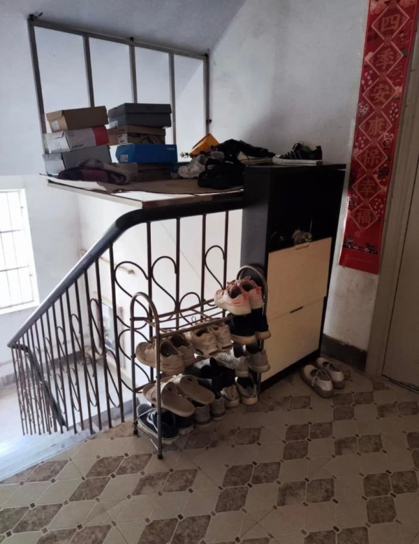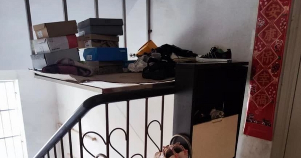貼文網友在臉書「●【爆廢公社二館】●」PO出照片,可以看到樓梯扶手就延伸到該樓層,一旁則有一扇門,應該就是該層住戶的家。其中,最後一段扶手處,有2個鞋架靠在下方,這幕並不驚奇,讓人看呆的是在上方,該住戶自己用鐵架騰空架出一個空間,用來堆放鞋子和鞋盒。