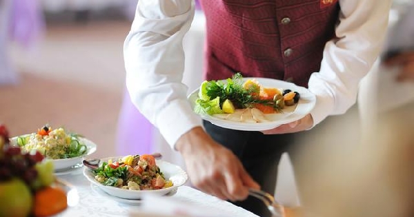 服務生從人的頭上上菜,