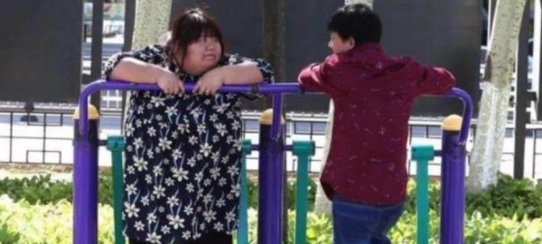 此時的陳皖枝已經重達260斤,但她的身高僅1m55,整個人看起來十分的臃腫。