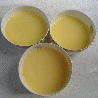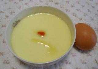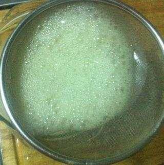 4、用漏勺把雞蛋液表麵的泡沫濾掉