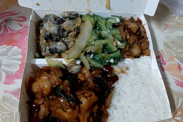 這名男子在「爆廢公社公開版」分享,他的便當夾了蚵仔、苦瓜、雞肉等菜色,一共選了4樣菜,同時搭配白飯,不過結帳時金額將近300元,讓他嚇了一跳。
