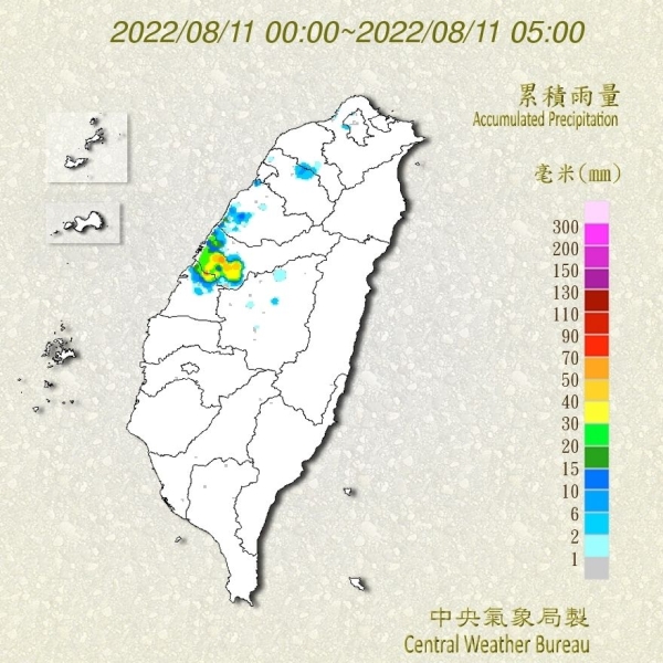氣象局今晨對苗栗縣、台中市、彰化縣發布「大雨特報」,對流雲系發展旺盛