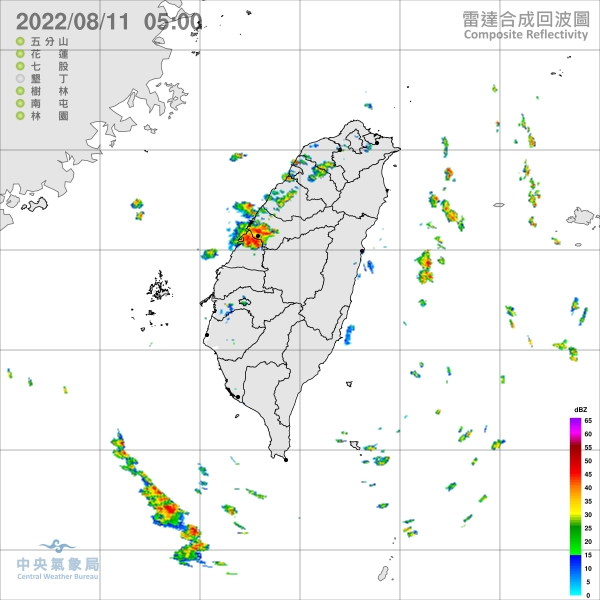 台灣位於太平洋高壓邊緣,吹偏南風,東南部和恆春半島整天有零星降雨