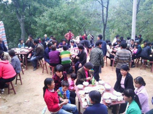 兒子滿月酒這天,在家裡辦的,有10多桌,我娘家來了40多人,還有一些老公本家的親戚和幫忙的。