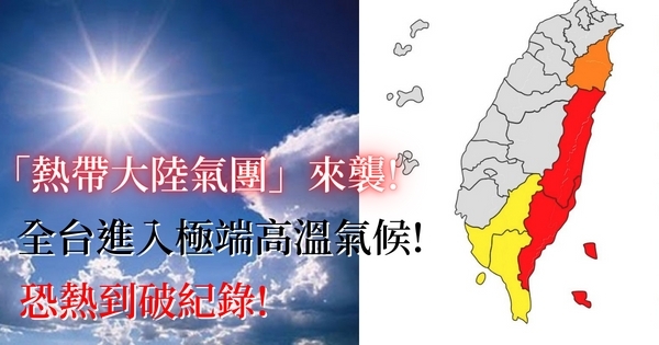 下週一、二北部及東半部將出現「極端高溫」,並有挑戰今年最高溫紀錄的機率;