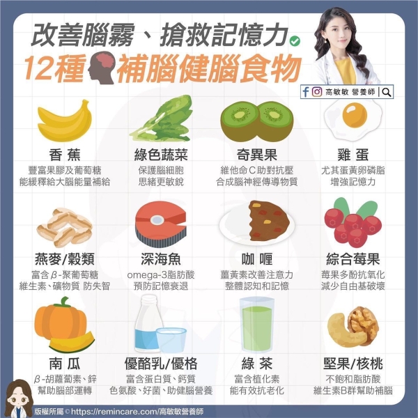 ▲營養師推薦12種食物搶救記憶力。(圖/截取自高敏敏營養師臉書)