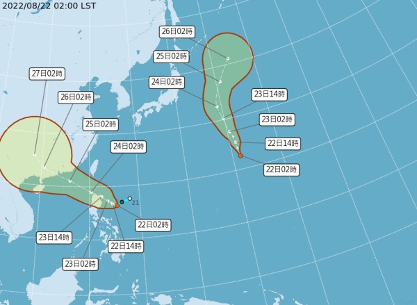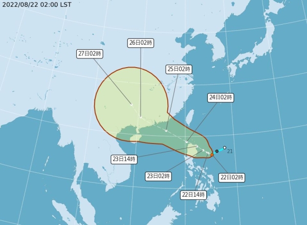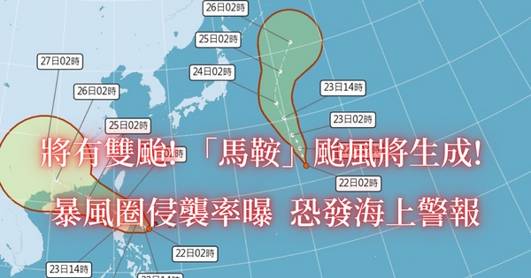 預估今天(22日)有機會成颱,周二晚起外圍環流影響,也有發布海上颱風警報機率;