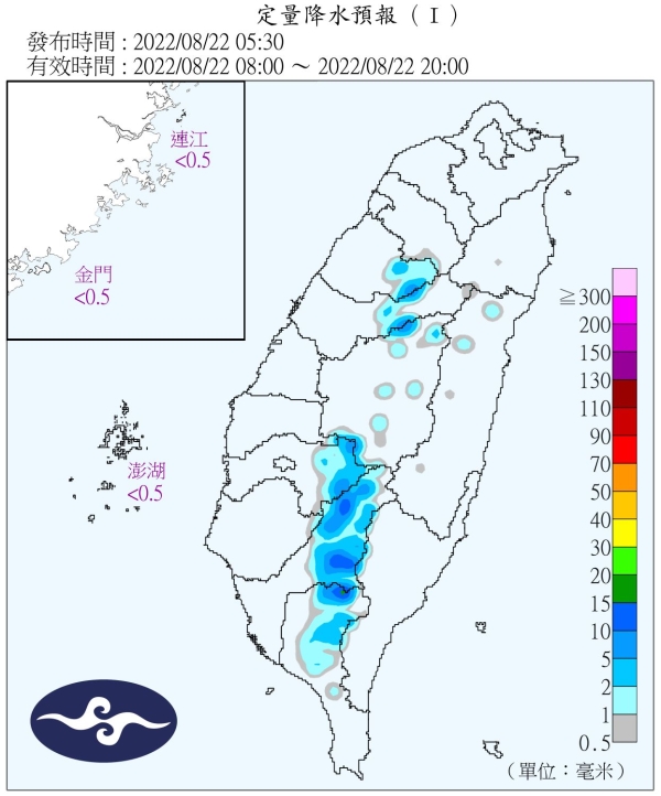 降雨部分,只有午後在嘉義以南及其他山區有零星短暫雷陣雨。
