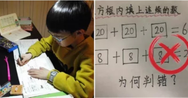 國小生的數學題目有2個,並給出了等式,如果光從這個等式來看的話,8+8+8確實是等於20的,20+20+20也等於60,可是「8+8+8=20」卻被判錯了,家長看到後非常生氣,於是直接就找到了老師進行理論,可是家長找到老師後卻被打臉了,原因就是國小生的答案確實是錯的。