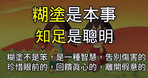 成熟後,時間磨去了年少輕狂,漸漸悟透了一些東西:糊塗是福氣!