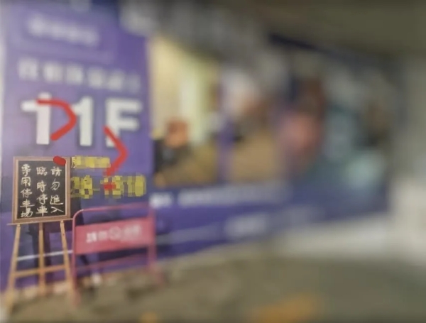 出口處僅有一塊小黑板標示「臨時停車禁止進入」。(圖/翻攝自臉書社團「爆料公社」)