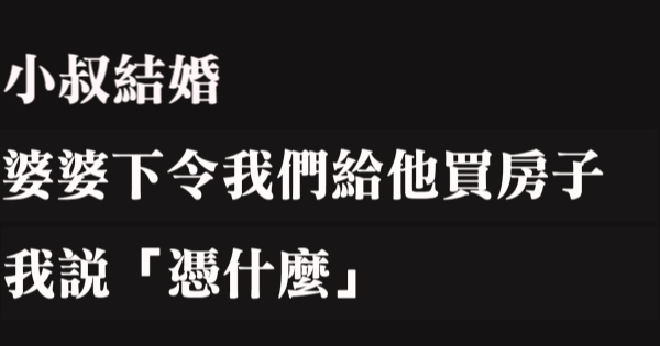 第二天老公跟我說「要不然咱們給小叔買個車付個首付聘金再叫我媽他們自己想辦法」