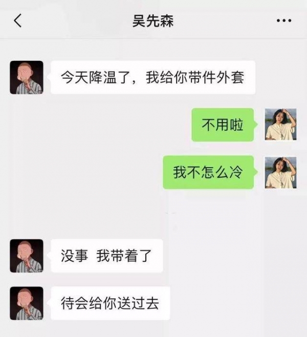 出門天冷給你帶外套、特殊時期給你上紅糖水、時不時的給你帶個小驚喜。