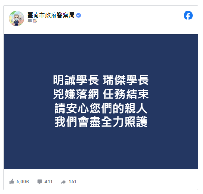 (圖/翻攝自Facebook/曹瑞傑哥哥臉書、台南市政府警察局)