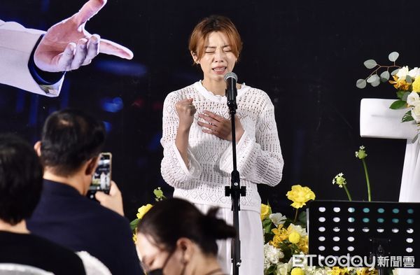 ▲艾成追思會,王瞳淚崩。(圖/記者李毓康攝)