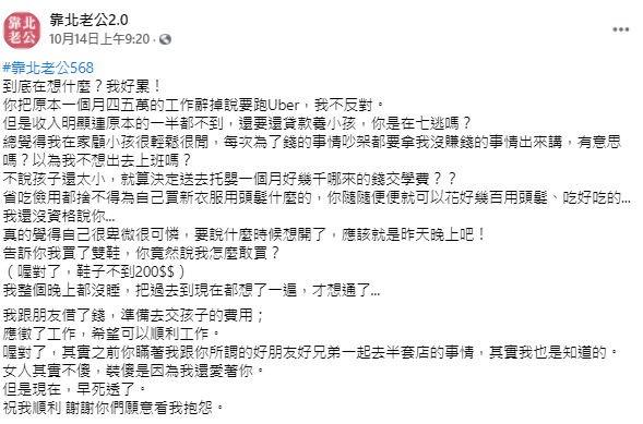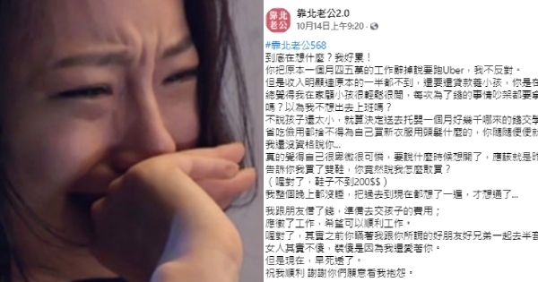 對你來說,如果老公為了跑uber辭去四五萬的工作